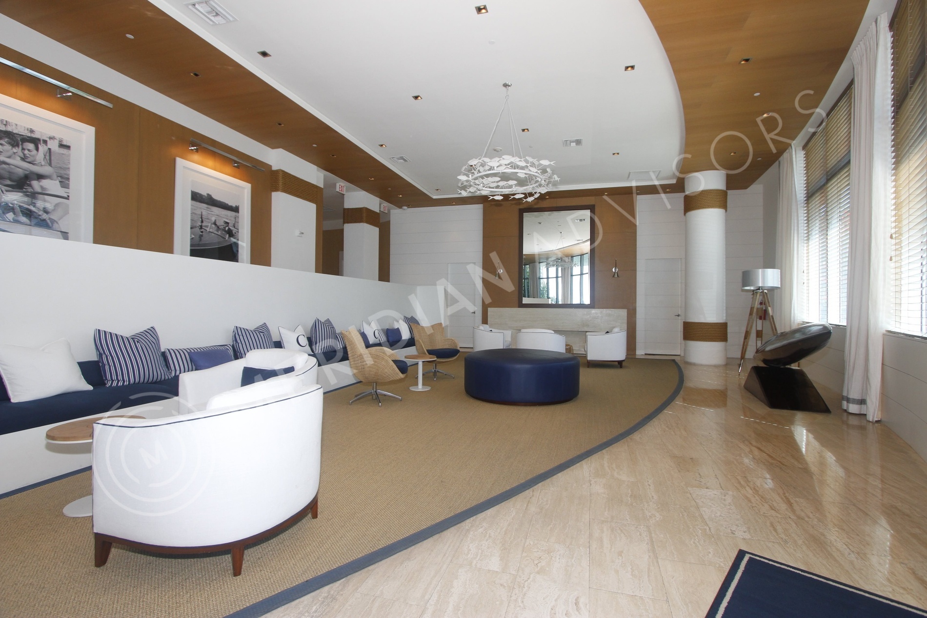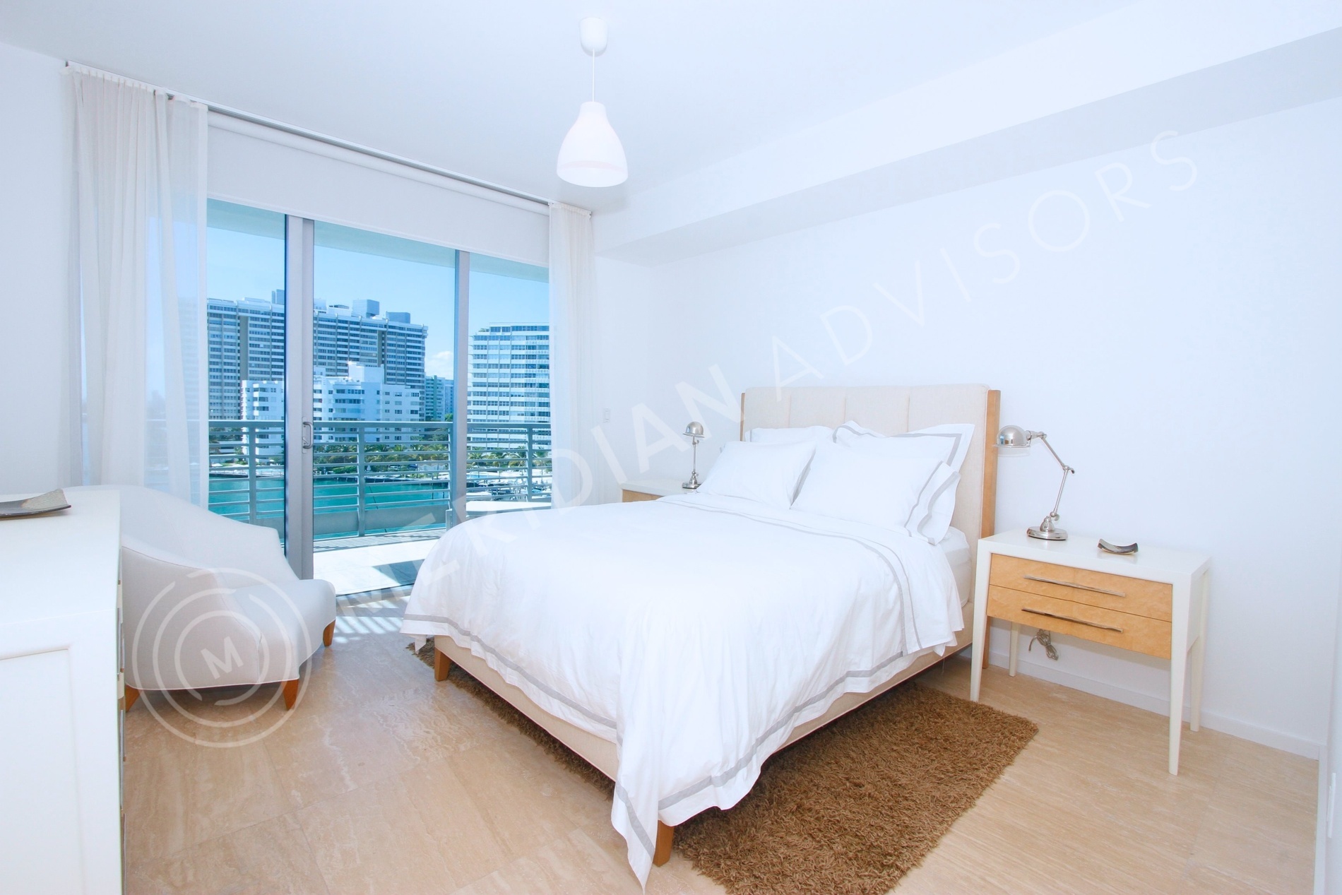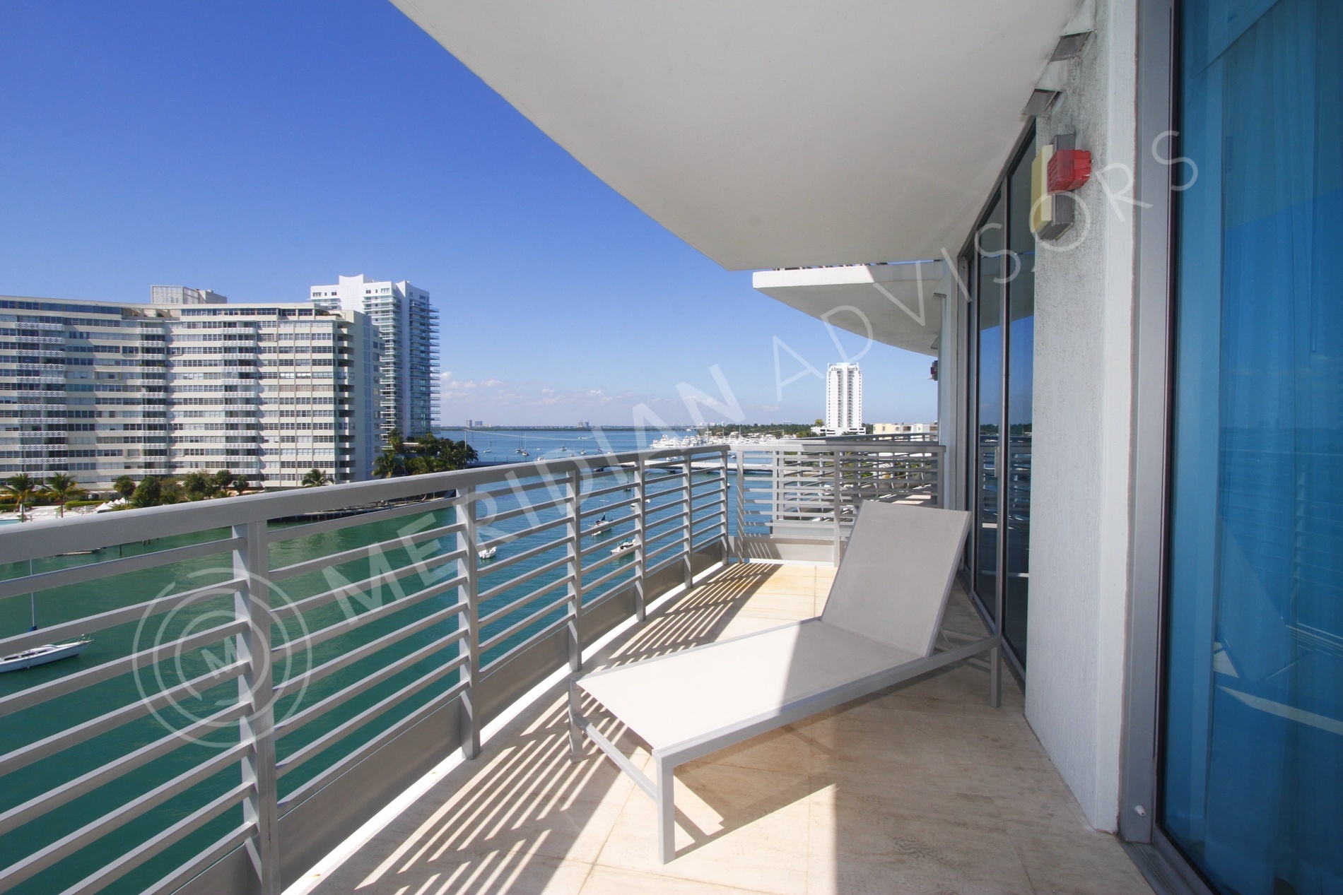 Capri South Beach was built in 2008 and designed by Kobi Karp, one of South Florida’s most prolific architects. The project consists of three buildings of varying sizes, side by side on Biscayne Bay, within the urban fabric of South Beach. The northernmost building is a historic midcentury hotel edifice designed by seminal South Florida architect Igor Polevitzky, which has been given a classically contemporary interior, while the other two buildings are contemporary structures. Together, the architecture of the three structures imitates the jaunty, sweeping sails of a yacht in nearby Biscayne Bay, caught in the wind.